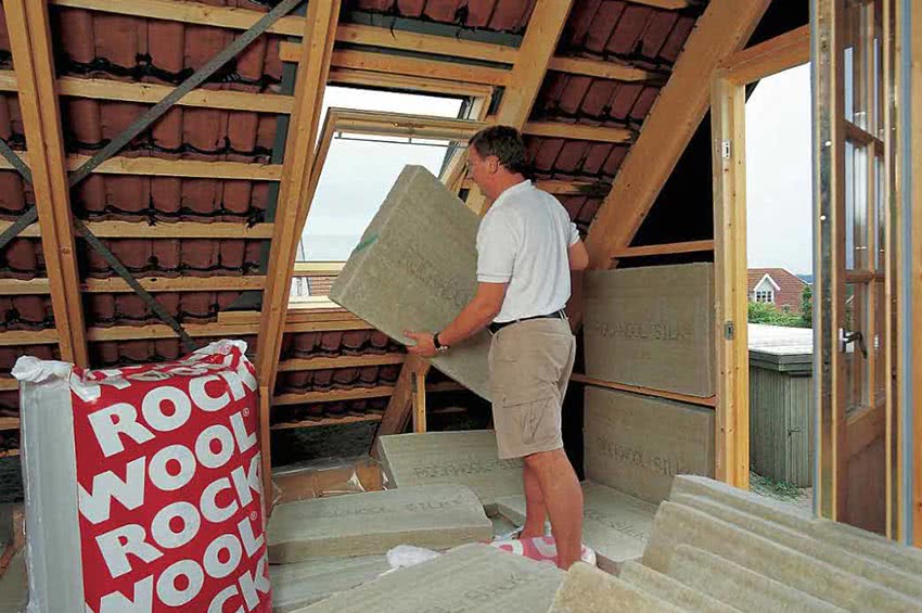 При этом листы минеральной ваты нужно нарезать на несколько сантиметров шире, чем зазоры между стропилами. Это нужно для того, чтобы исключить образование щелей в теплоизоляции.