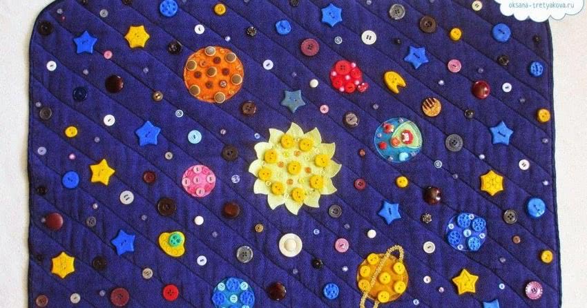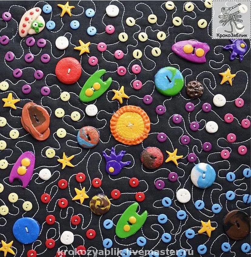 Веселый космический мир в пуговичной интерпретации.