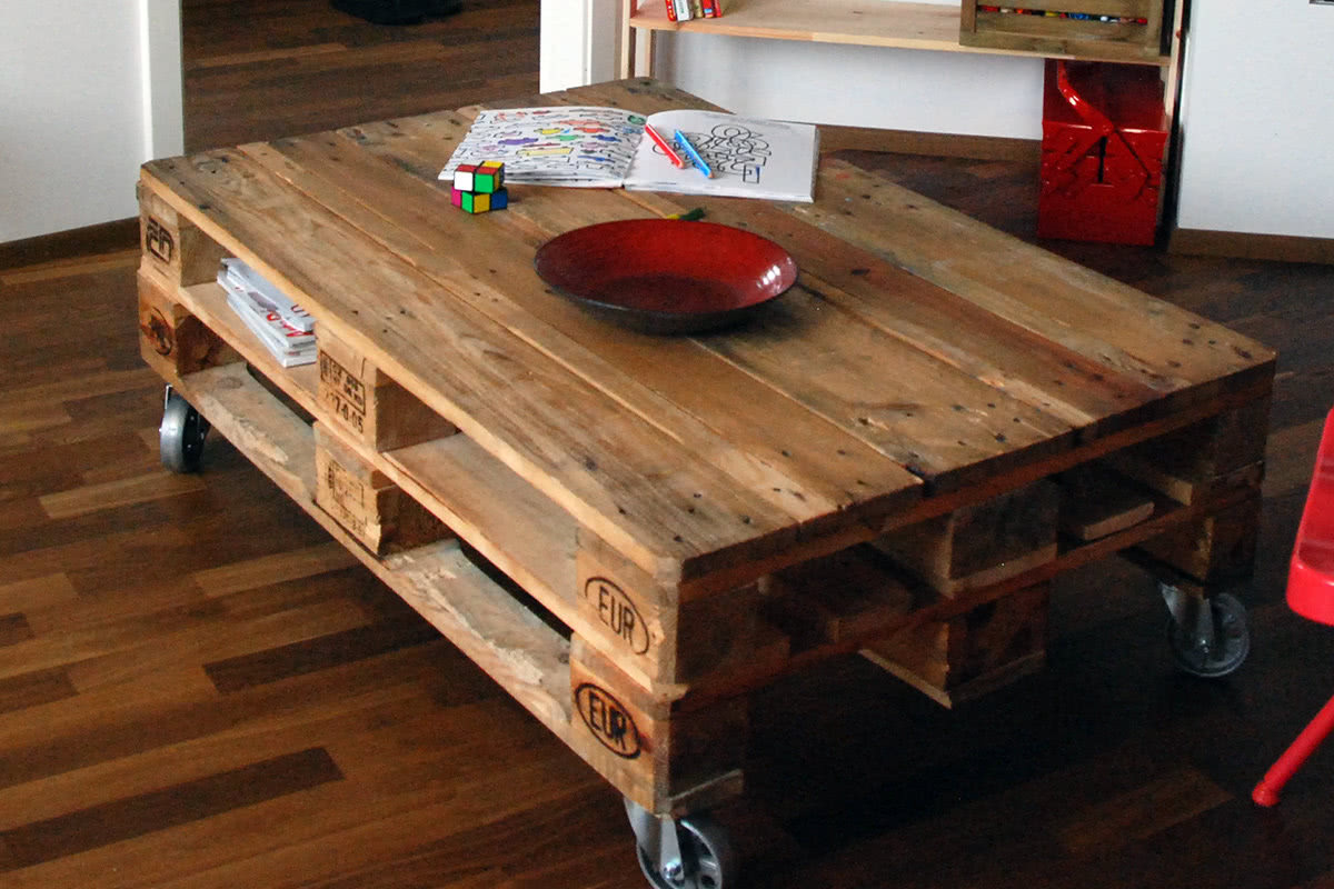 Это еще одно преимущество мебели из поддонов. Так как древесина покрывается и клеится очень индивидуально, столы из поддонов можно выбрать на свой вкус. Таким образом, столы из поддонов впишутся в любой интерьер.