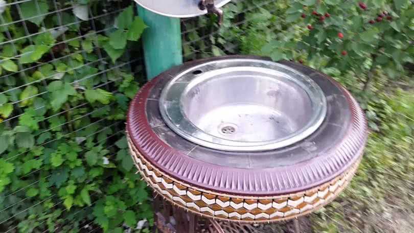 - Ручку вырезают из еще одной шины или используют резиновый обрез от предыдущей шины.