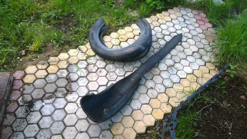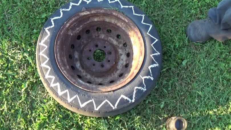 Первым делом выясняется пригодность покрышки для поделки из шин.
