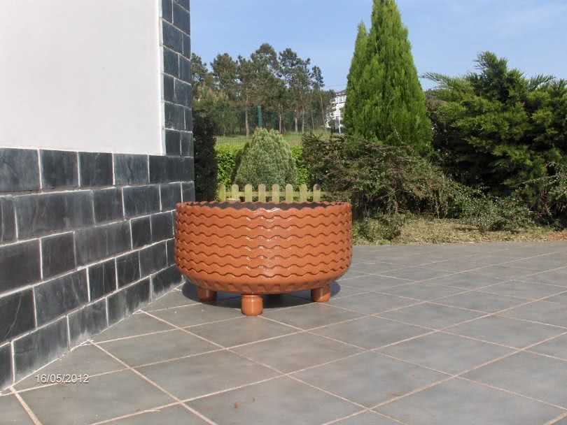 Стоит рассмотреть один из наиболее интересных и оригинальных – большие чашки из автомобильных покрышек. Материалы для работы те же самые, что и в предыдущем способе, кроме наполнителя.