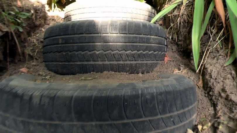 - Просверлите внизу покрышек отверстия для дождевой воды (чтобы вода не накапливалась внутри).