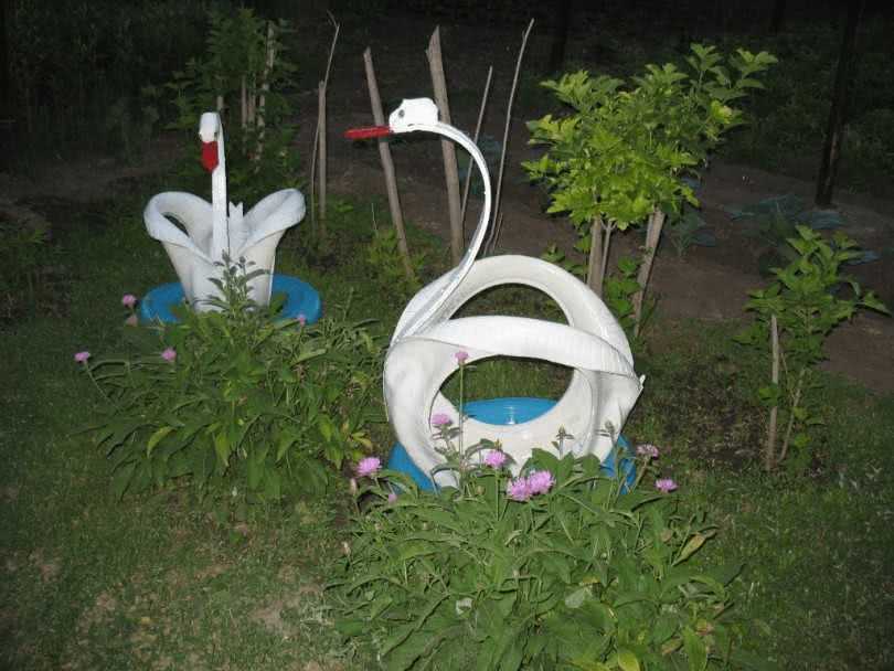 Клумба-лебедь отлично подчеркивает общий стиль садового участка. Поделки из шин для сада – отличная задумка для тех, у кого есть доля терпения, фантазия и скопившиеся старые покрышки.