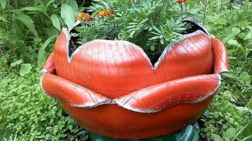 Покрышка имеет простую форму полого бублика, поэтому часто рассматривается как примитивный вариант благоустройства участка.