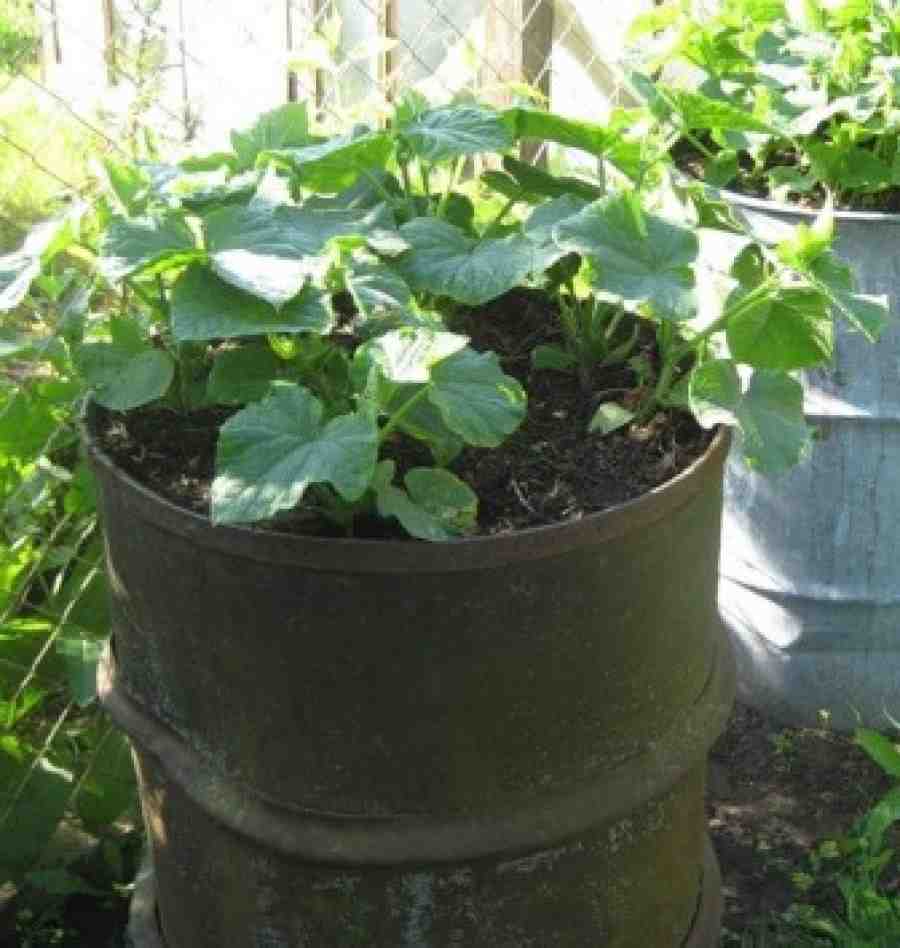 Огурцы в бочках и шинах могут стать красивым украшением огорода