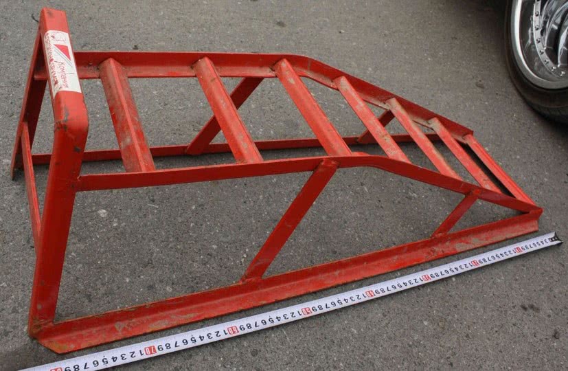 Для фиксации авто в нужном положении нужно изготовить и специальные прокладки, которые используются для предотвращения самопроизвольного съезда машины с эстакады. После завершения работ вся конструкция окрашивается.