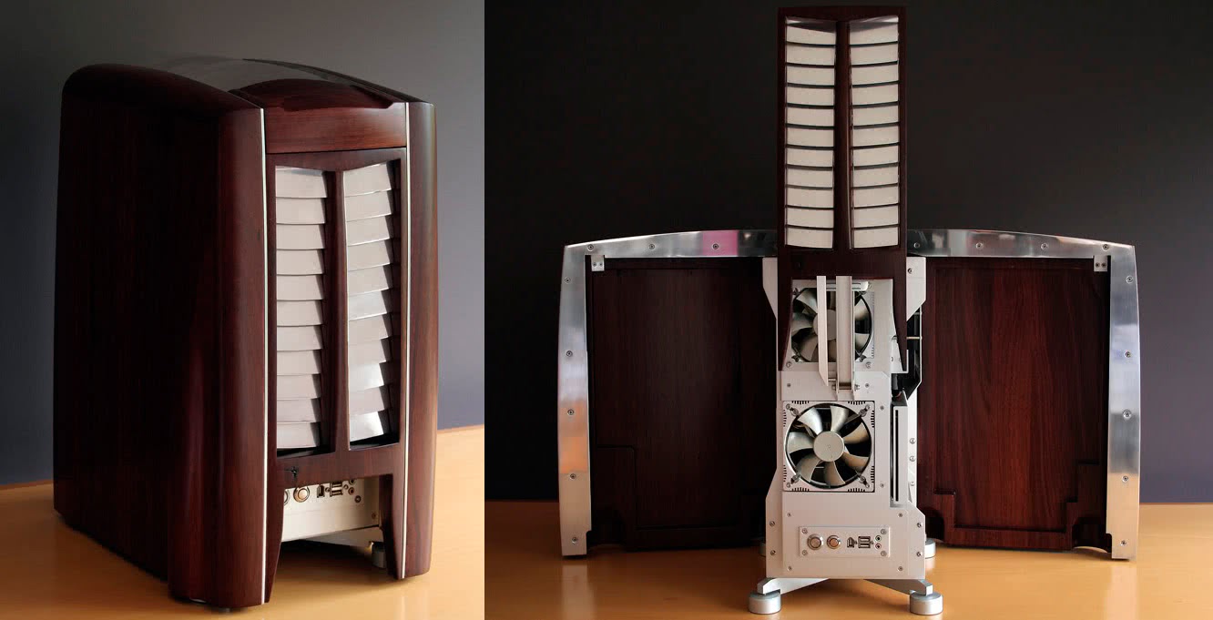 Этот корпус стал первым проектом известного моддера Атиллы Лукаса. Системный блок сочетает элементы металла и дерева. При желании пользователь может сдвинуть переднюю и боковые панели, чтобы полюбоваться начинкой компьютера. Стиль системного блока напоминает аристократичные автомобили Rolls-Royce или Bentley.