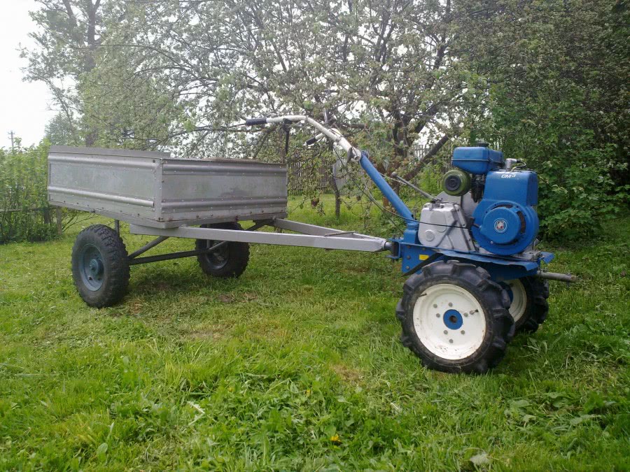 - перевозку груза с максимальным весом в 250-300 кг. Для этого потребуется присоединить к мотоблоку прицепом, в комплектации с местом для перевозки тяжелых грузов;