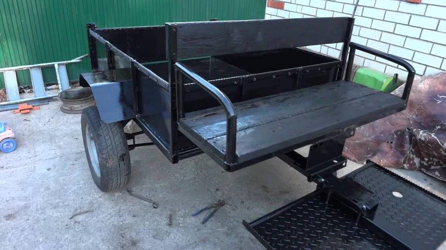 Также, кузов прицепа можно сделать из разных подручным материалов, листового металла, толщиной не менее 1-1,2 мм, профнастила, досок и даже пластика. Для кузова подойдет любой материал, если он отвечает вашим задачам и требованиям. Здесь надо рассчитать нагрузку, тип перевозимых грузов и т.д.