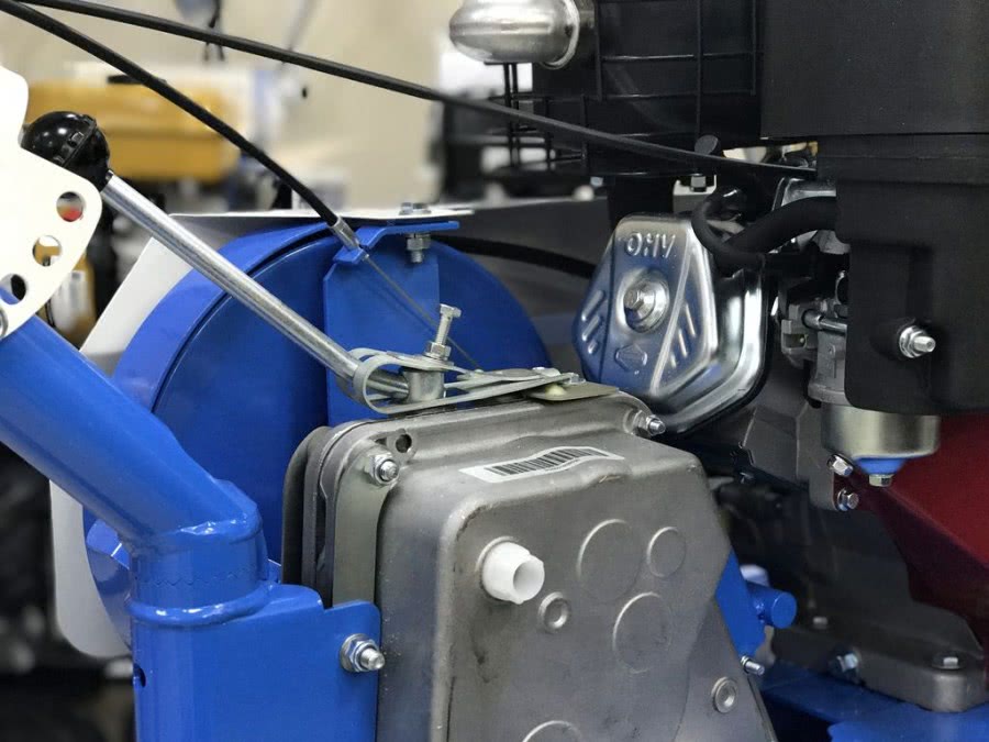 Для регулировки скорости используется родная КПП, также используются мотоциклетные звездочки (основная и промежуточная,) количество зубьев которых подбирается с учетом необходимой выдаваемой мощности. Рабочие инструменты агрегата выполняются в виде колес с ножами и могут выполнять функцию триммера, мотофрезы или мототяпки.