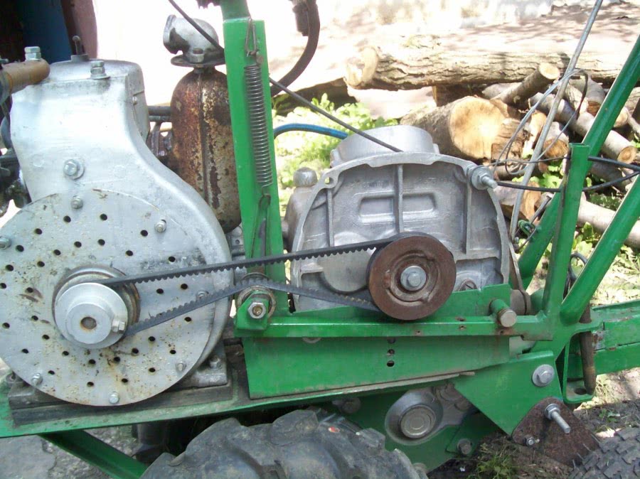 В большинстве случаев на самодельных минитракторах силовая установка противоположная. Для этого к каркасу привариваются специальные крепления. Передний двигатель поможет сбалансировать атаку. Передача движения на колеса происходит благодаря ременной передаче. Чтобы ремень можно было правильно натянуть, все застежки должны быть регулируемыми