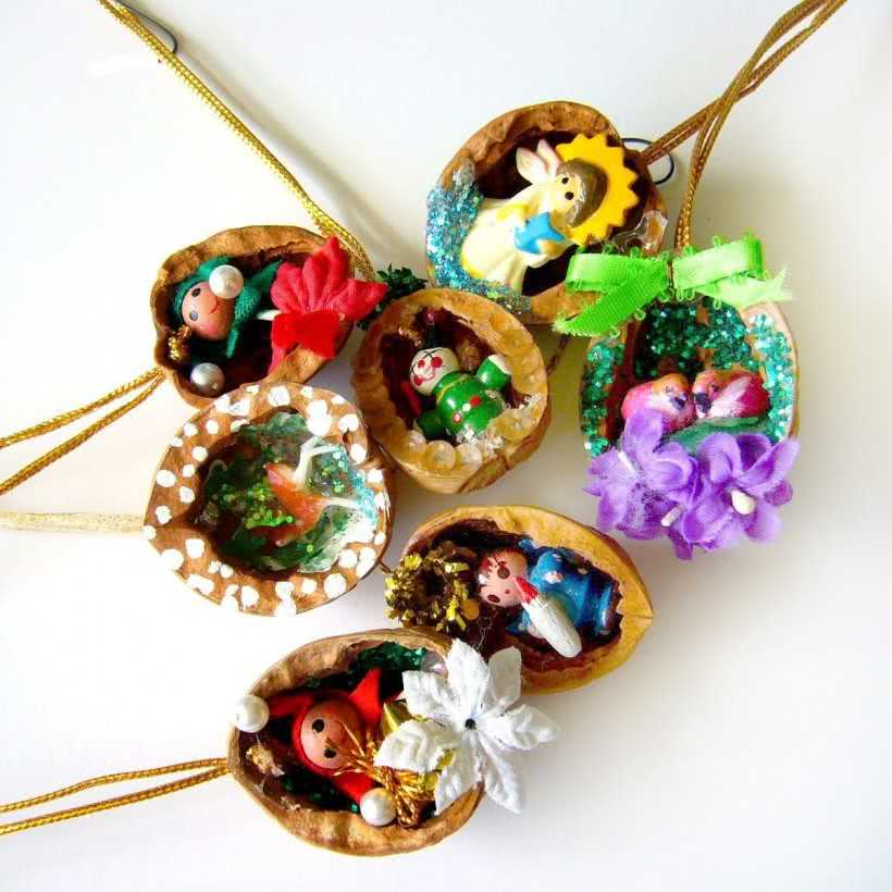 Из скорлупы грецких орехов можно смастерить оригинальные елочные украшения: