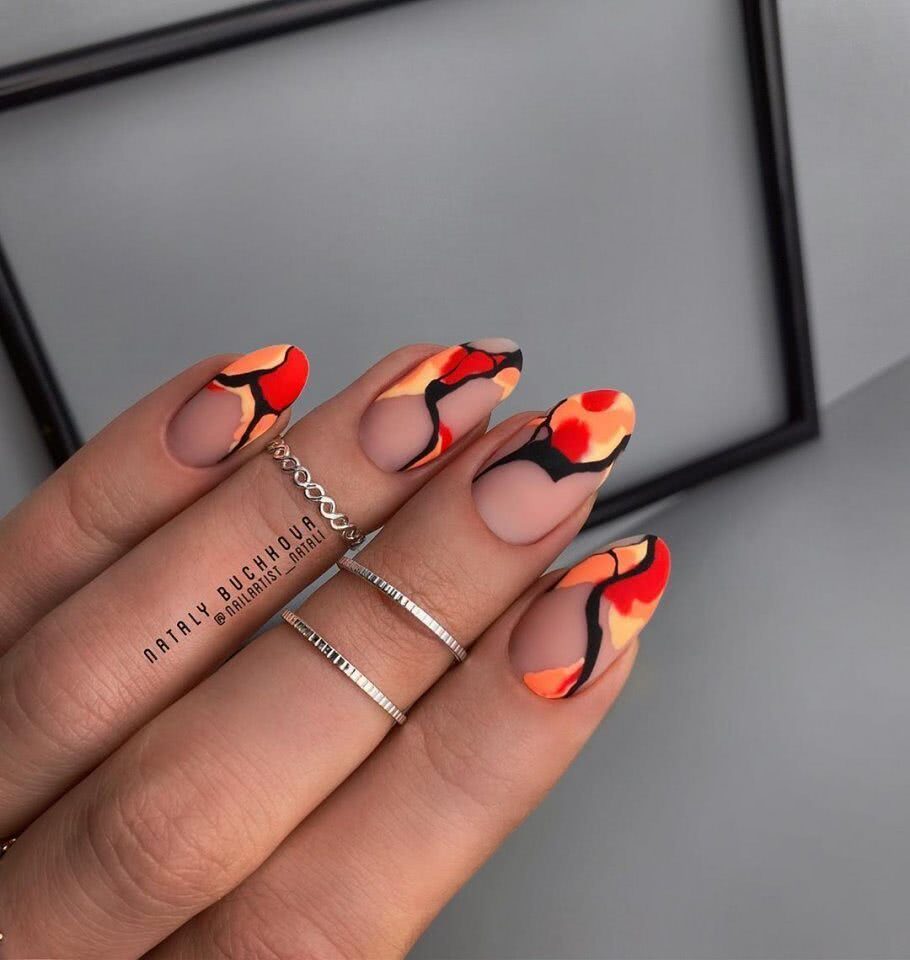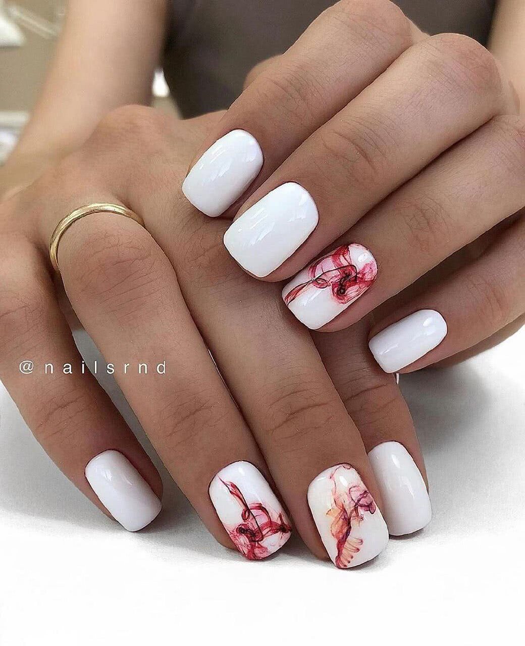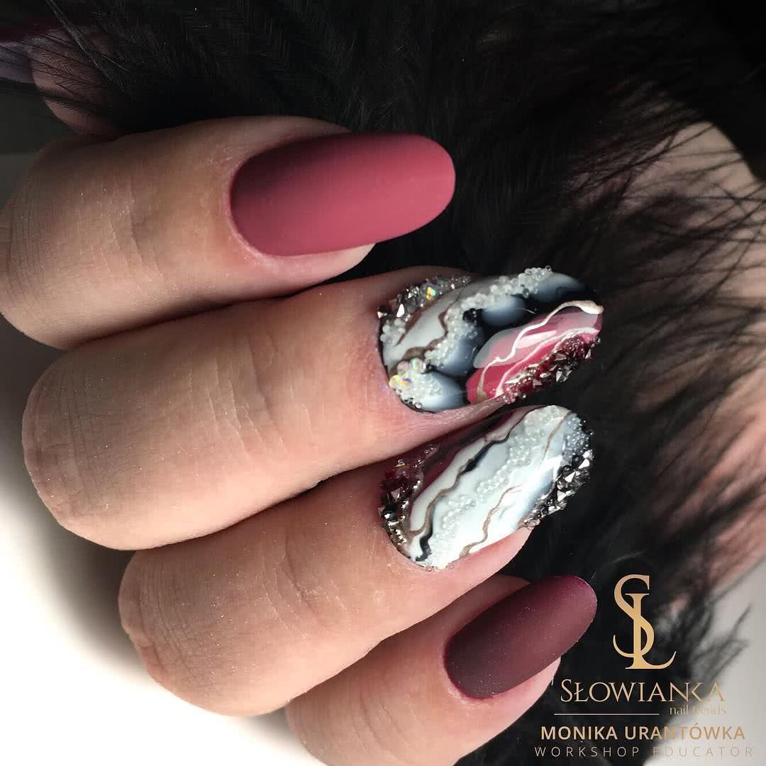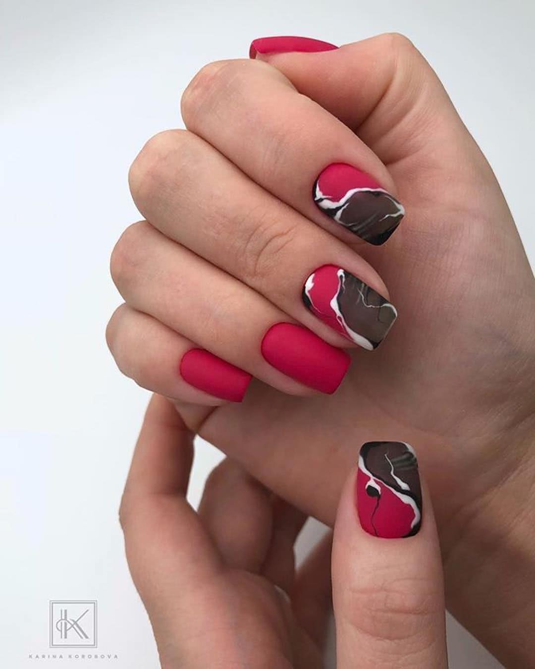 Самое важное — правильно подобрать оттенок красного. Красный мраморный маникюр хорошо сочетается с черным лаком