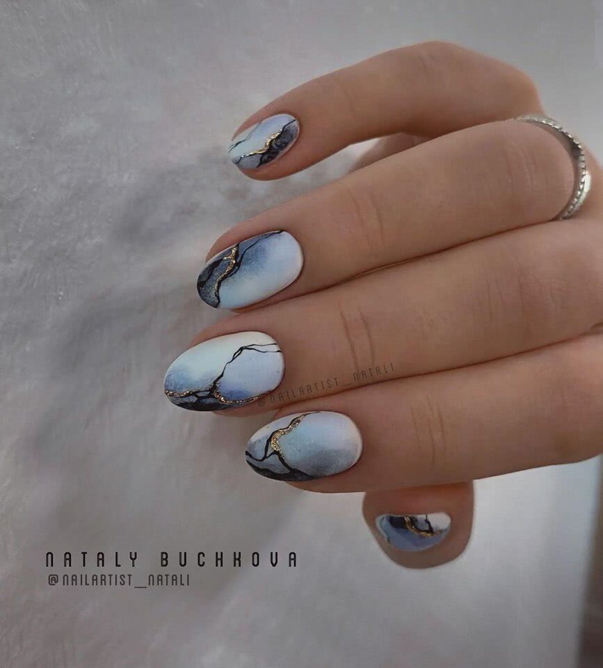 Дизайн коротких ногтей обычно сложная задача. Не все идеи можно воплотить из-за маленькой поверхности ногтя, это не удобно и далеко не всё смотрится красиво. Но в этом случае, мраморный маникюр сделать проще простого!