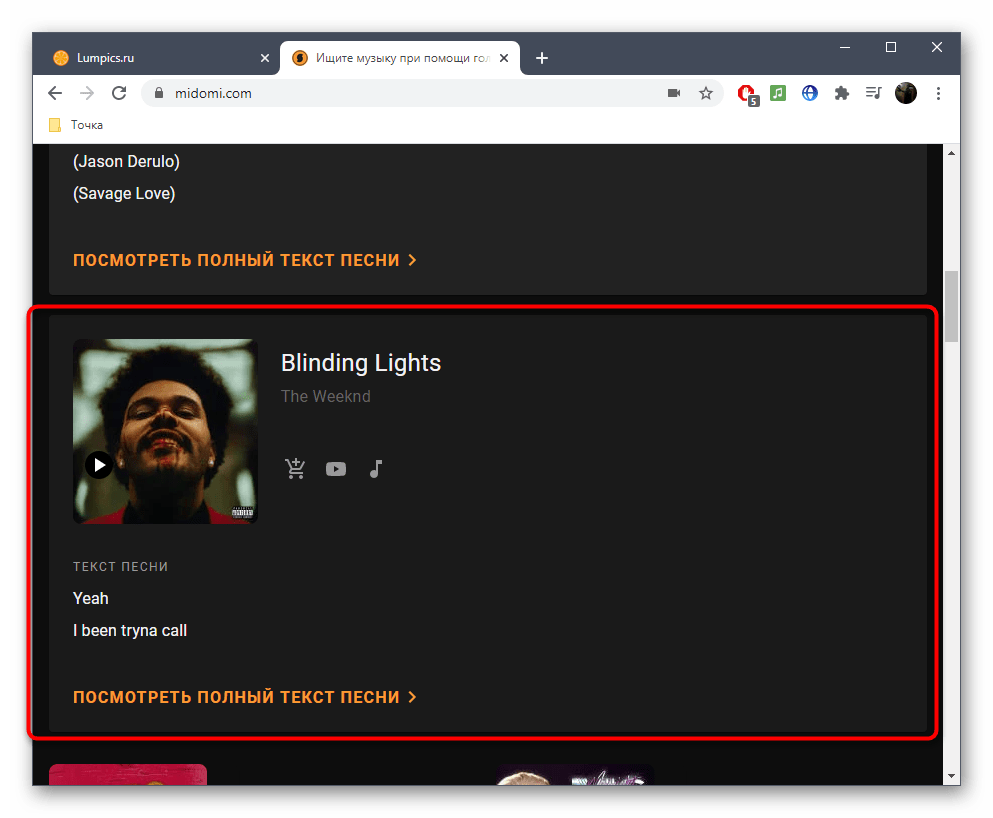 Если вдруг в качестве результата отобразился не тот трек, начните процесс сначала или попробуйте напеть другой отрывок. Тогда инструмент Midomi должен нормально справиться со своей задачей.