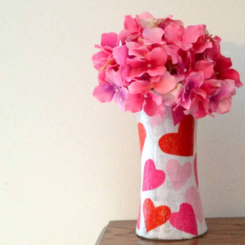 - Украшаем вазу цветочками из бумаги или бусинками.