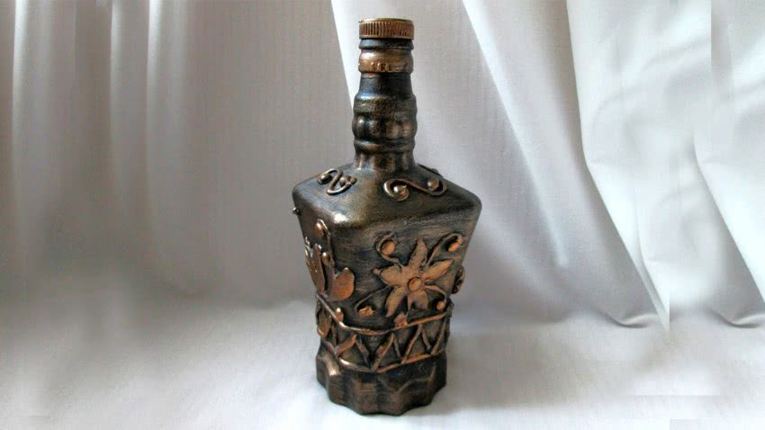 - Аккуратно снять бутылку и вынуть изнутри стакан. При необходимости отшлифовать поверхность вазы мелкозернистой наждачной бумагой.