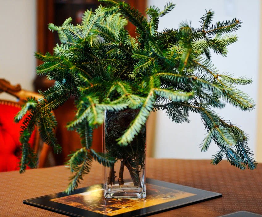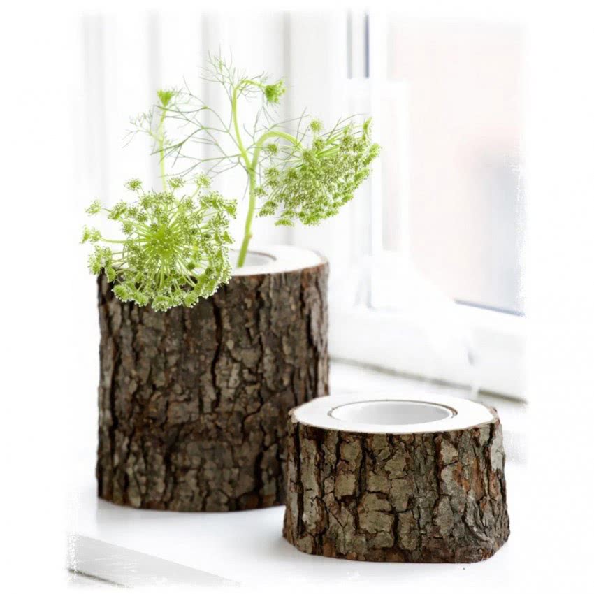 В такой вазе, декорированной «под дерево» отлично будут смотреться букеты из осенних листьев и ягод.