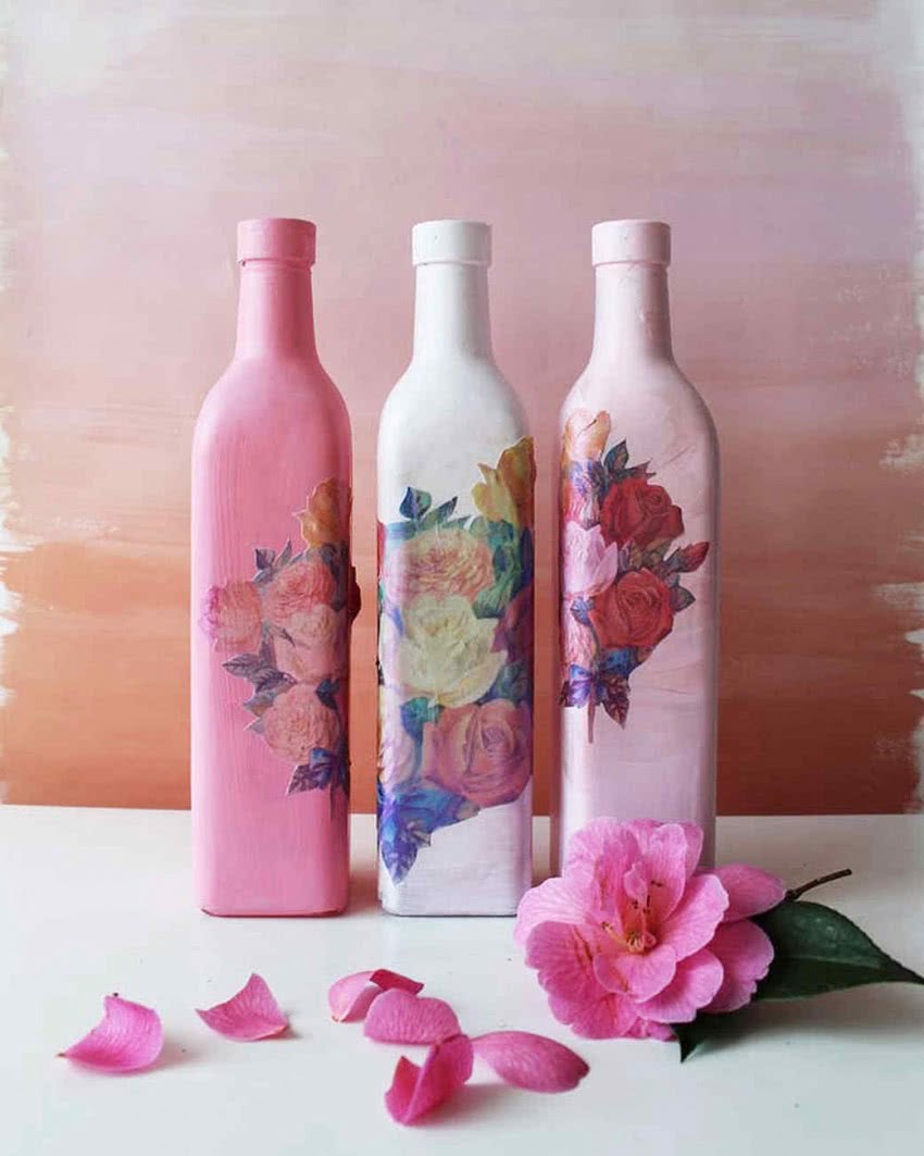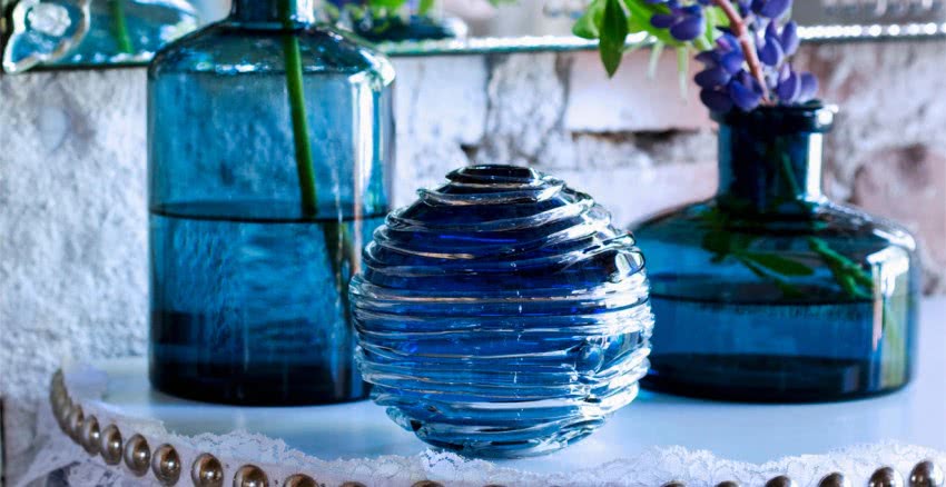 Вазы напольные, высокие, стеклянные можно просто декорировать различными предметами (монетами, пуговицами, лентами, крупами). В магазинах для рукоделия можно приобрести краски для витражей и создать из простой стеклянной бутыли свое произведение искусства.