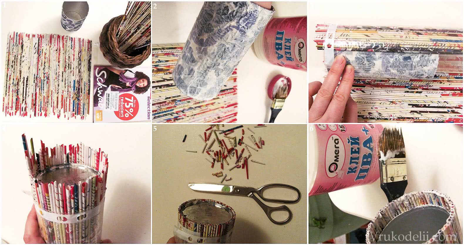 В каждом доме всегда найдется ненужные журналы и газеты. Их можно использовать для изготовления трубочек, из которых собирается ваза. Чтобы приготовить трубочки из бумаги, понадобится: