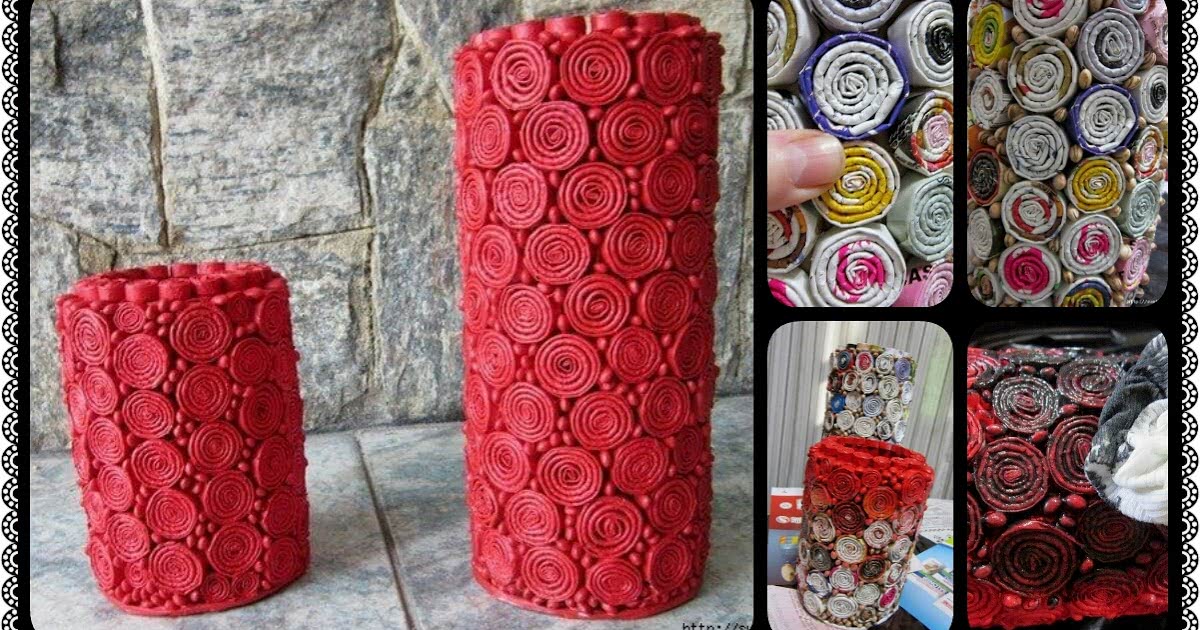 Теперь начинается самая трудоемкая работа – создание украшений для вазы из бумаги. Нарежьте старые газеты на полоски, сложите полоски пополам и скрутите их в рулончики. Кончики бумаги закрепляйте супер-клеем или клеем ПВА. Приклейте готовые украшения к поверхность картонной трубы с помощью клея ПВА, плотно располагая друг к другу.