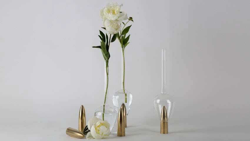 Для того чтобы создать узор на цилиндрической стеклянной вазе, можно использовать канцелярские резинки. Их необходимо натянуть на вазу в хаотичном порядке, а потом — разбрызгать краску. Получится стильный полосатый узор.