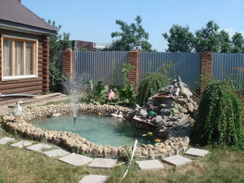 Не нужно рисковать и монтировать украшение из воды излишне близко к стене постройки. В противном случае влага может привести к разрушению как фундамента, так и стен постройки. Еще одним дополнением водоема во дворе может стать обустройство ручья и водопада, о чем говорится в статье «Искусственный водопад во дворе, в саду и на даче — как сделать своими руками».