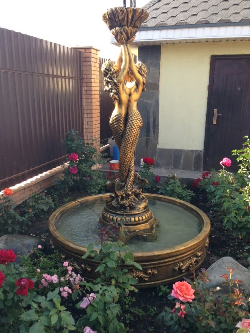 Также для украшения участка используют стационарные фонтаны, которые представляют собой уже готовую фигуру.