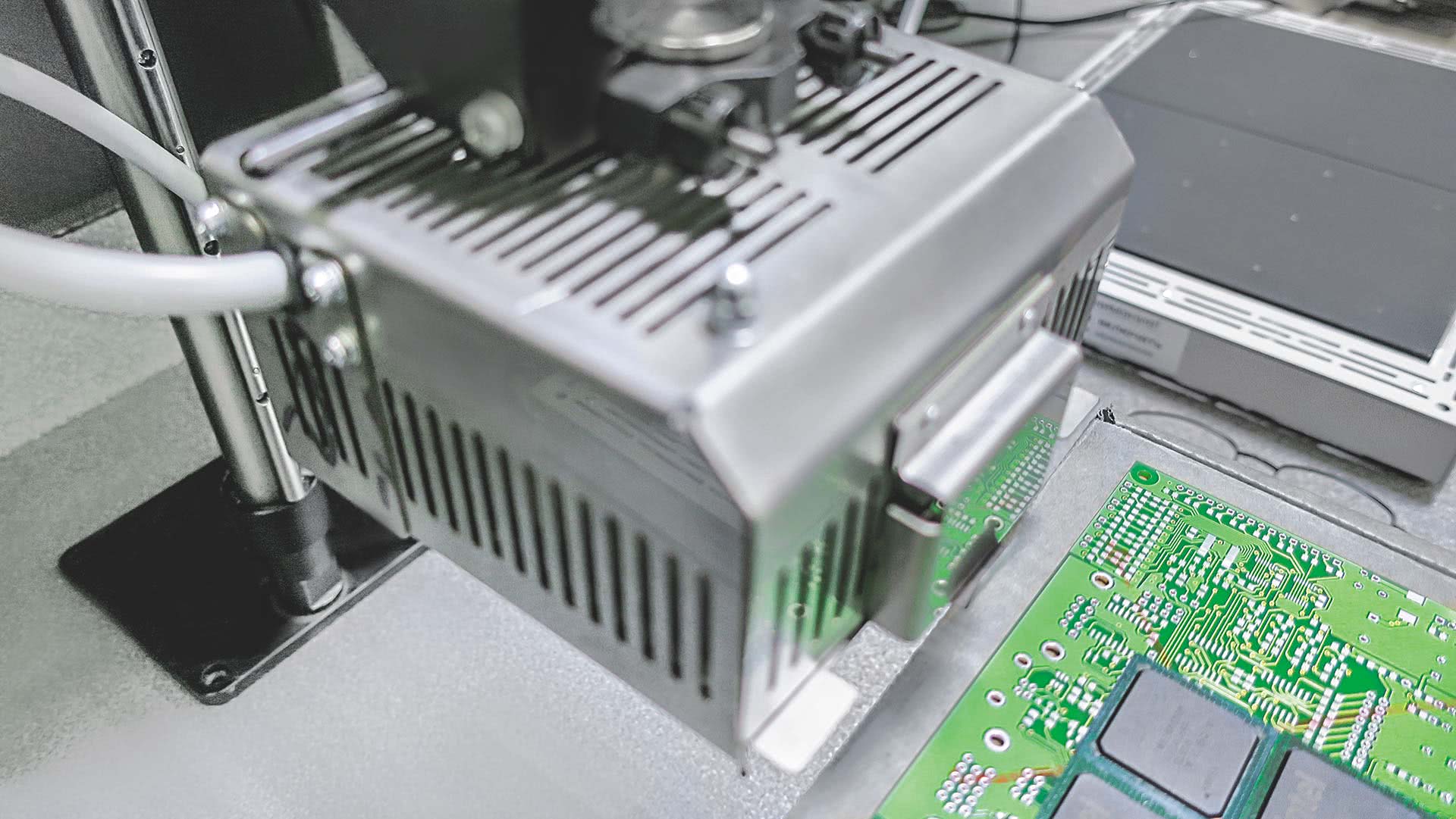 Пайка и нижний подогрев по термопрофилю — термостолы обеспечивают автоматическую пайку печатных плат путем оплавлением паяльной пасты по термопрофилю с формированием зоны охлаждения. Пайка осуществляется контактным способом с размещением платы непосредственно на рабочей поверхности термостола. Обратная связь в процессе пайки обеспечивается термодатчиком установленном на печатной плате и специальным алгоритмом, который автоматически корректирует температуру в соответствии с термопрофилем. Эта функция очень удобна при изготовлении сложных прототипов и мелкосерийной пайке печатных плат, существенно экономя время и обеспечивая качество пайки на уровне конвейерных печей оплавления. |