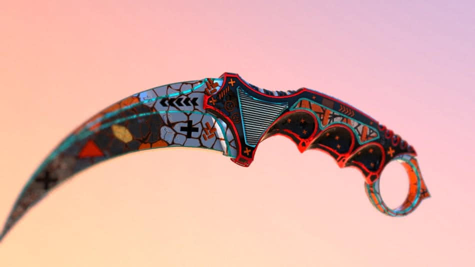 Керамбит с градиентным рисунком выглядит очень ярко и необычно. Любой человек, который знаком с KS GO, увидев у вас такой нож, сразу вспомнит об игре.