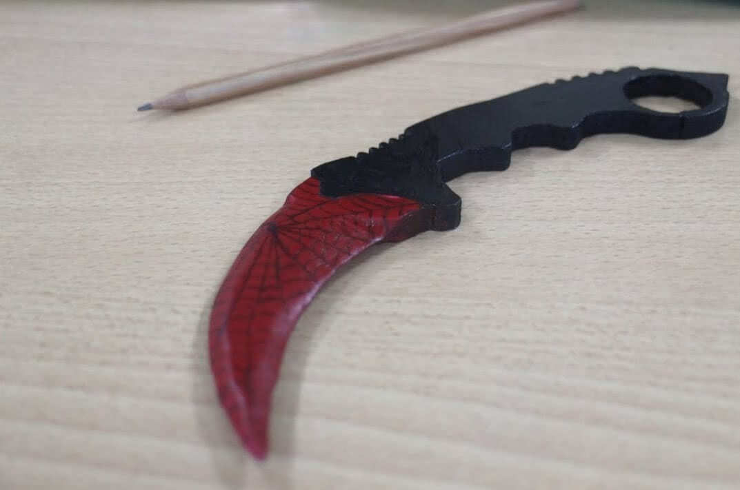 Только хорошо приглядевшись к этому фото можно понять, что Кровавая паутина на керамбите нарисована, а нож сделан своими руками.