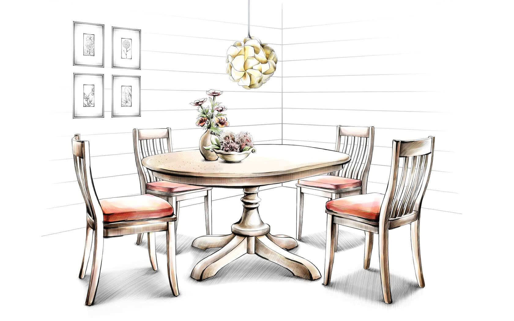 Следует различать понятия эскиз и чертеж. На первом этапе создается как раз эскиз стола — рисунок, на котором будут отображены все особенности будущей мебели (форма, цвет, отделка). Сделать его можно вручную. Как вариант — воспользоваться графическими редакторами, включая онлайн-сервисы. На основе эскиза создается чертеж стола из дерева.