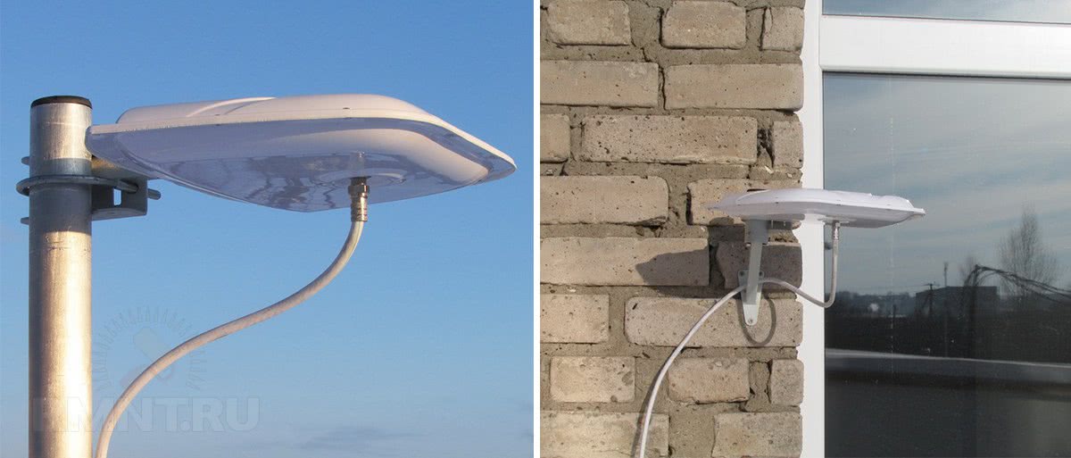 Внешние приемные устройства отличаются большой мощностью, которую обеспечивают специальная конструкция, в некоторых модификациях – встроенные усилители. Наружные антенны принимают сигналы от источника на расстоянии до 50 километров.