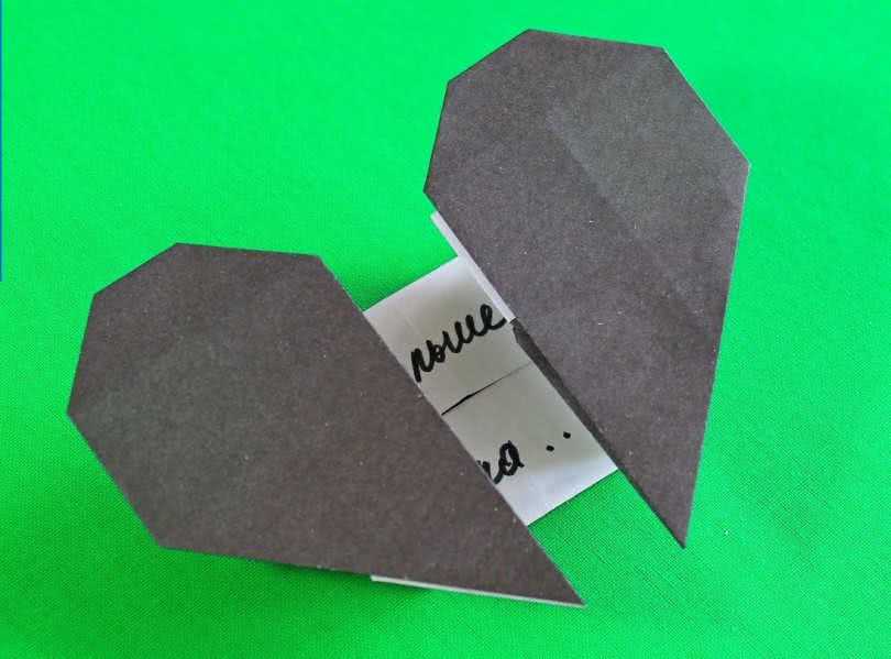 - Когда две части сердечка будут готовы, объедините их вместе, вставив концы последних модулей в кармашки.