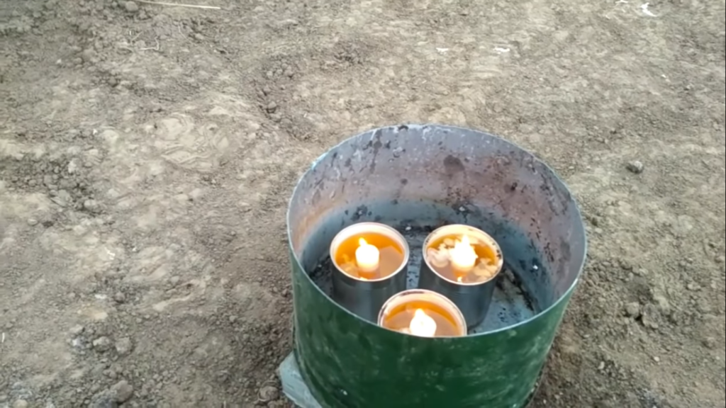 Чтобы максимально повысить температуру, поставьте в ведро несколько банок со свечами или установите несколько конструкций.