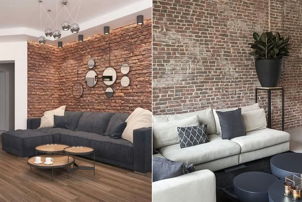 Палитра зависит от оттенка стен. Так, белый кирпич отлично сочетается со всеми цветами, но лучше придерживаться светлой гаммы, которая визуально наделит комнату светом. Красный кирпич выглядит основательно и вступит в «союз» со сдержанными, естественными оттенками.