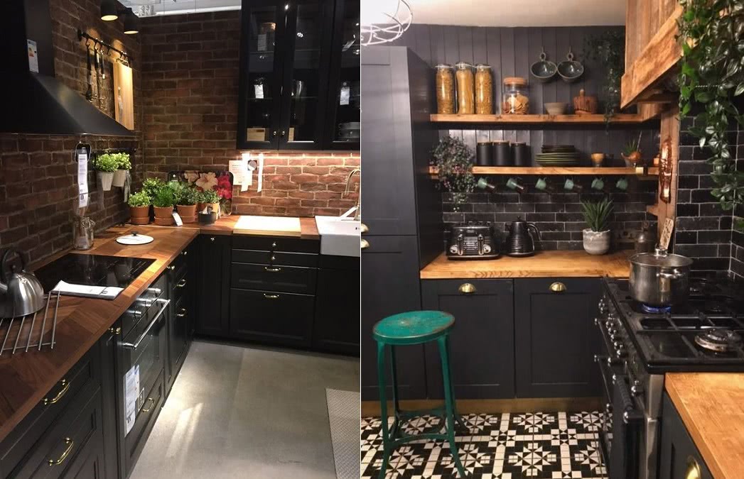 На фоне белого кирпича хорошо смотрится гарнитур из светлого дерева с яркими деталями или модели с насыщенными гаммами.На фоне красного — спокойные, холодные оттенки, которые в таком сочетании придадут помещению немного уюта.