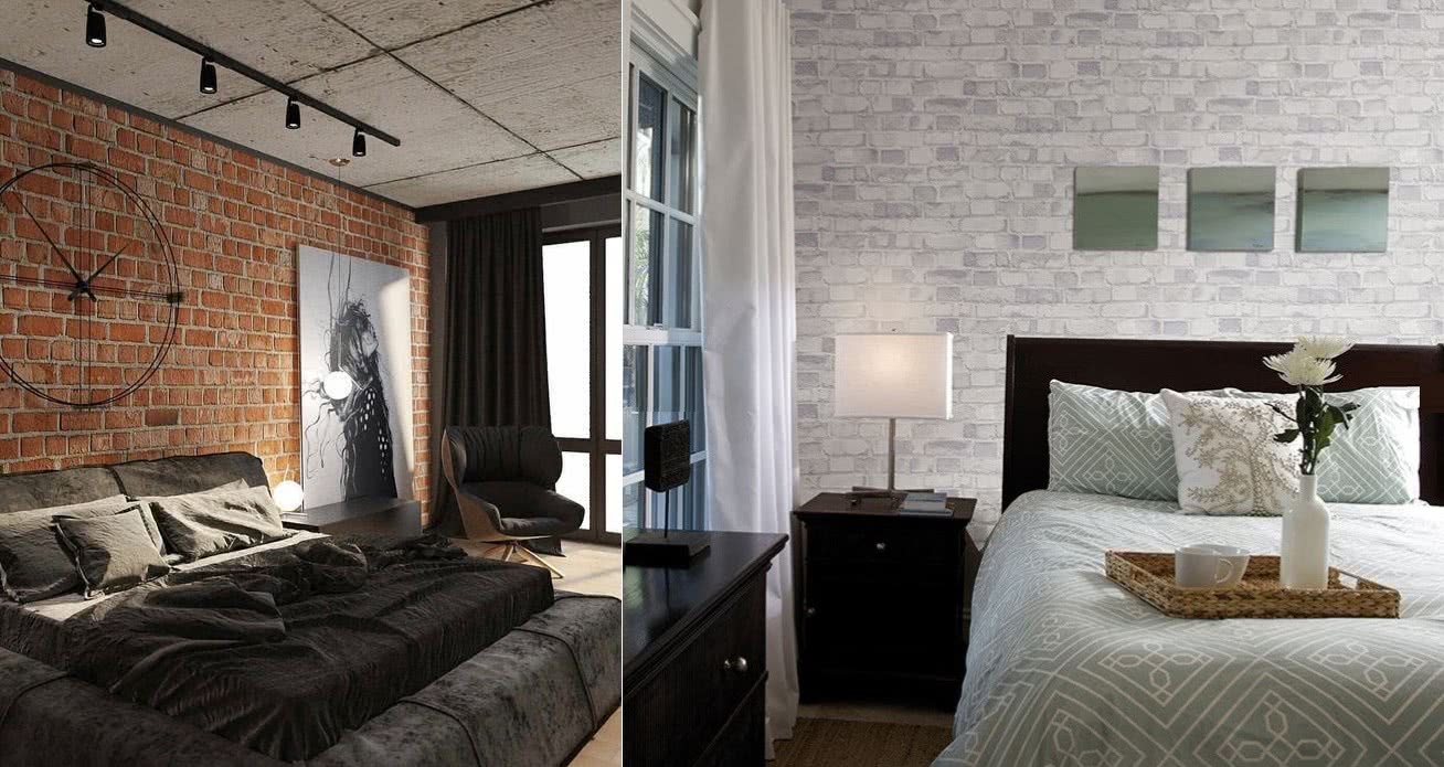 Рельефные обои под кирпич нужно с осторожностью использовать в спальне – они не должны отвлекать. Лучше место – изголовье кровати