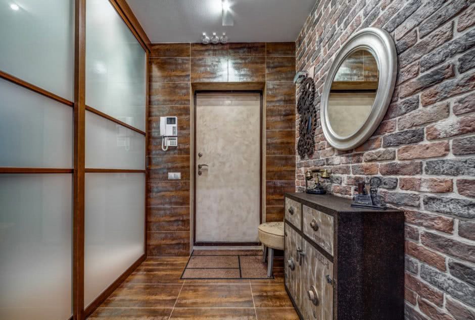 Если хочется использовать нестандартное покрытие, но есть опасения, что это нарушит домашний уют, можно вписать обои с кирпичным рисунком в прихожую — здесь они впишутся идеально. Но это важный пункт для домов, которые полностью оформлены в стиле лофт, так как для него необходимо организовать стилистическое единство всех помещений.