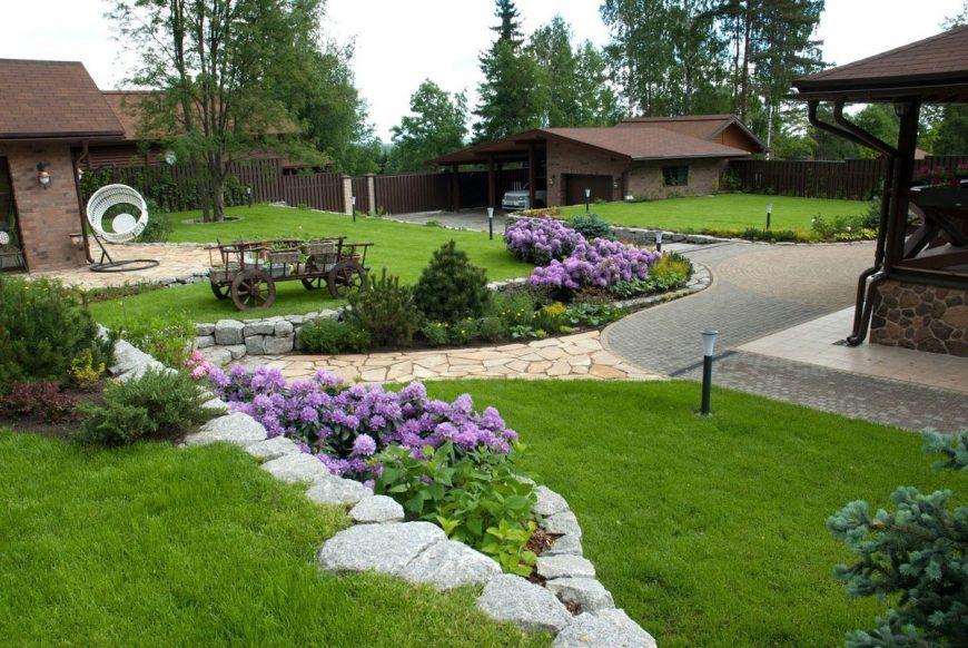 Озеленение дачного участка смотрится не полным декором без дополнительных элементов. Условно сады из растений и камней делятся на: