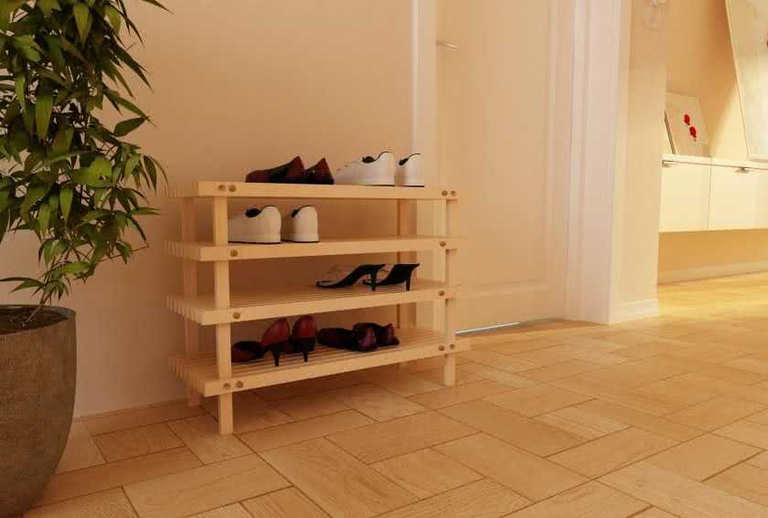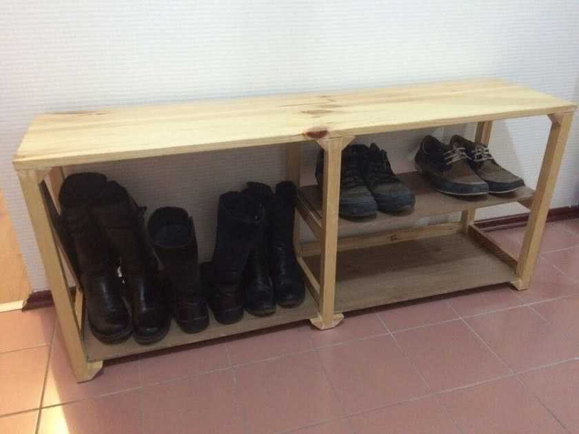 Обувную полку можно сделать из любых подручных материалов, при большом желании она получится не хуже многих дорогостоящих полок продающихся в магазинах.