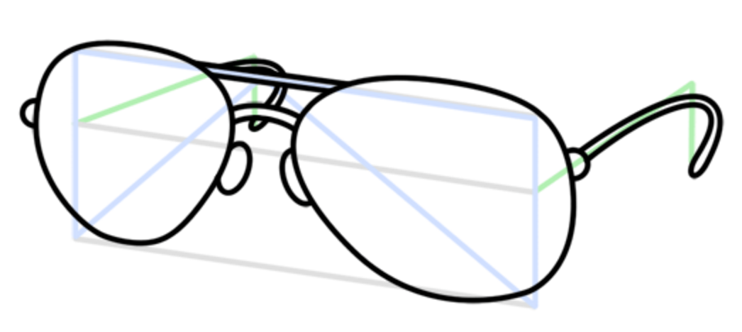 - Сделайте наброски нижней части очков.