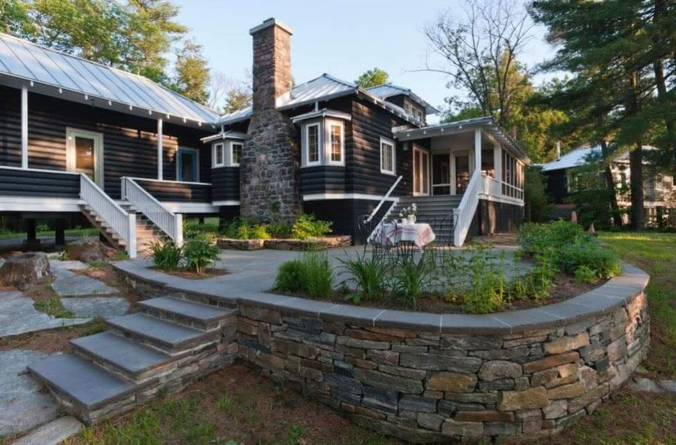 И совсем немыслимое сочетание для отделки – виниловый сайдинг и сланцевый натуральный камень.