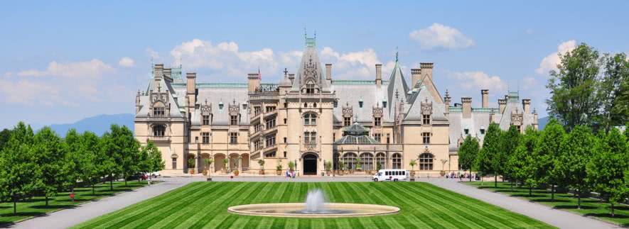 Выстроен в стиле Возрождения Франции по заказу железнодорожного короля Северной Америки Корнелиуса Джорджа Вандербильта. Площадь поместья превышает 3 тысячи гектаров, что делает его крупнейшим в Северной Америке.