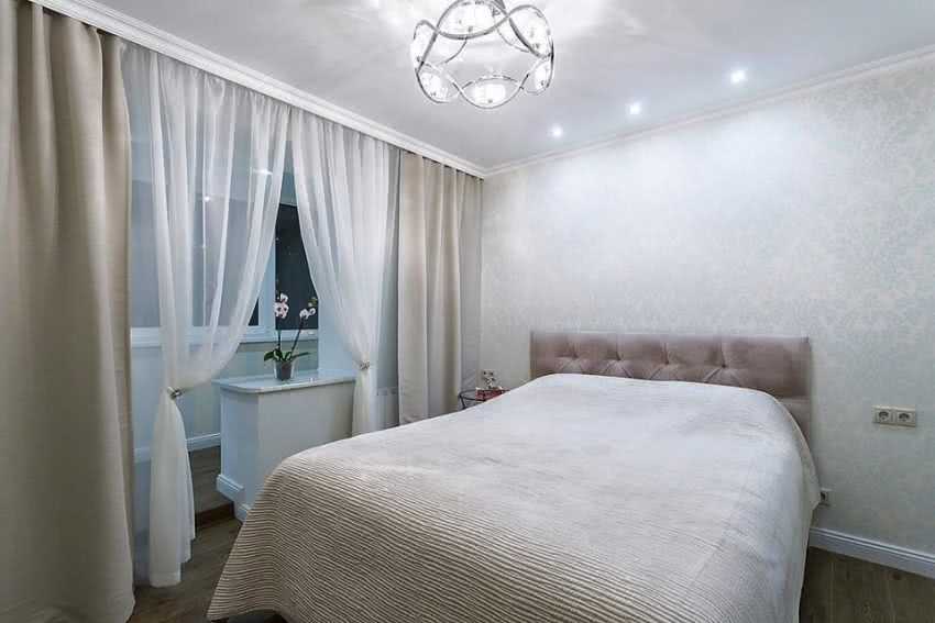 Самый распространенный вариант спальни — помещение с одним окном. Оформить подобную комнату очень легко — ограничений по стилю и направлению нет. Маленькое окно в спальне может визуально уменьшить помещение, поэтому рекомендуется использовать длинный карниз от стены до стены и прямые светлые шторы.