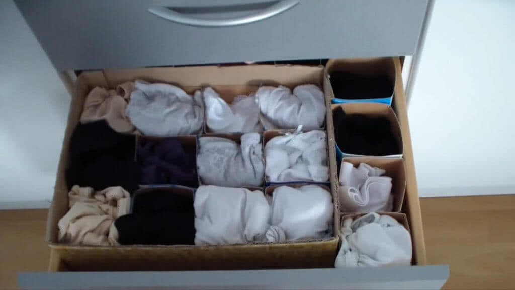 Чтобы создать хороший и долговечный органайзер для женского белья (да и для мужского тоже), не нужно обладать особыми прикладными навыками. Если вы умеете шить или аккуратно клеить, вы легко сделаете хранилище для белья не хуже фабричного. Себестоимость материалов гораздо ниже, чем цена покупного органайзера. Именно поэтому создание вещей своими руками стоит любых стараний.