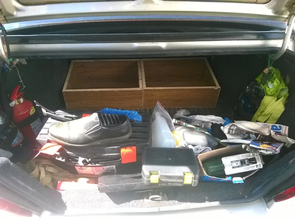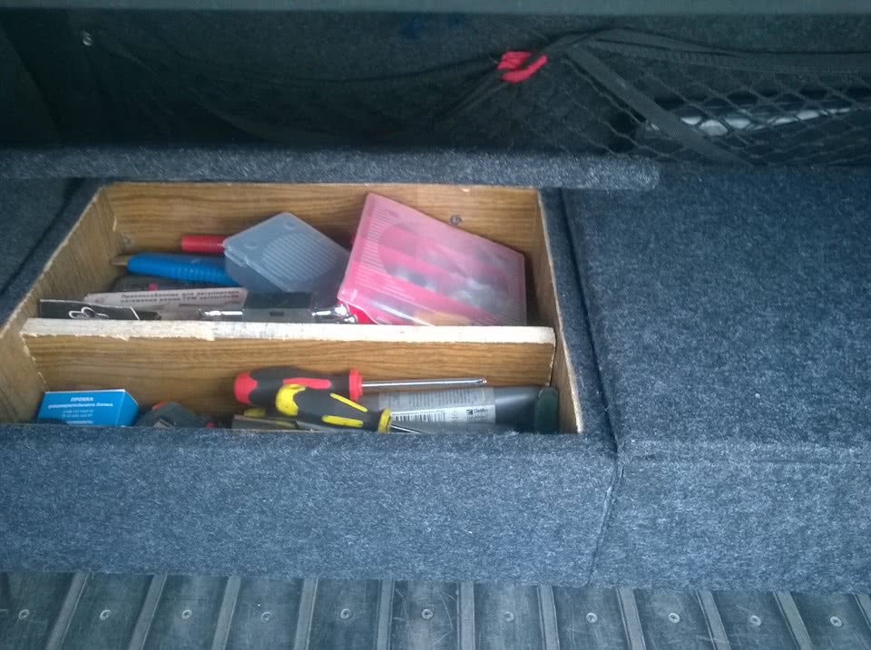 Мой личный опыт показал, что просто кидать в багажник какие-то вещи, особенно жидкости, опасно. Они прыгают туда-сюда при езде по нашим дорогам, открываются и разливаются. Так же вы легко потеряете какие-то мелкие детали и придется собирать их по всему отсеку