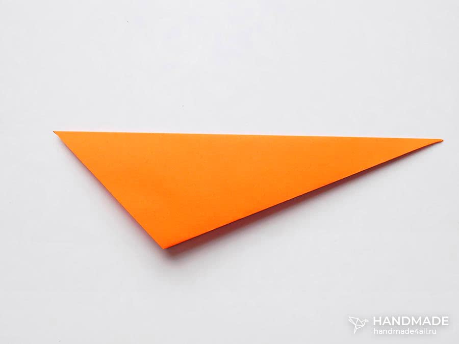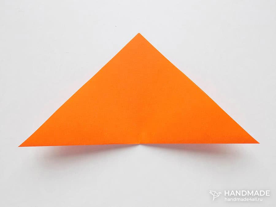 Перегните треугольник пополам, всеми загибами наверх.