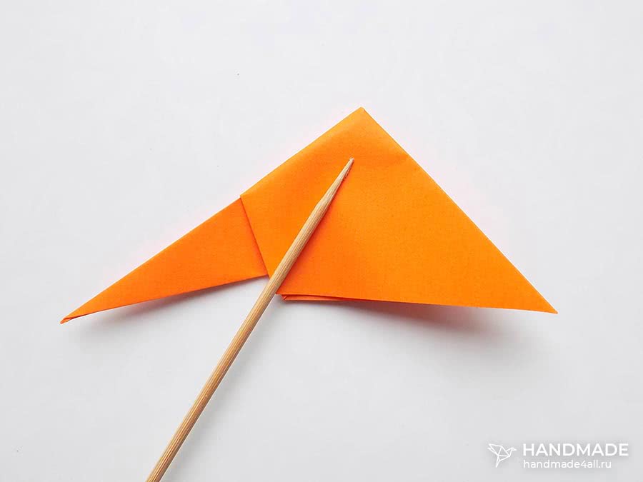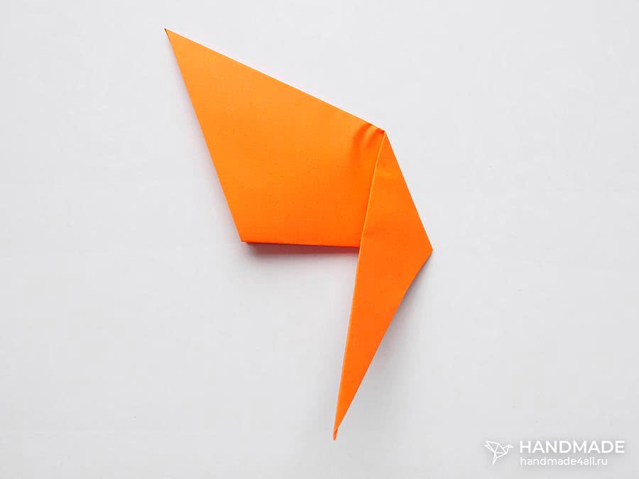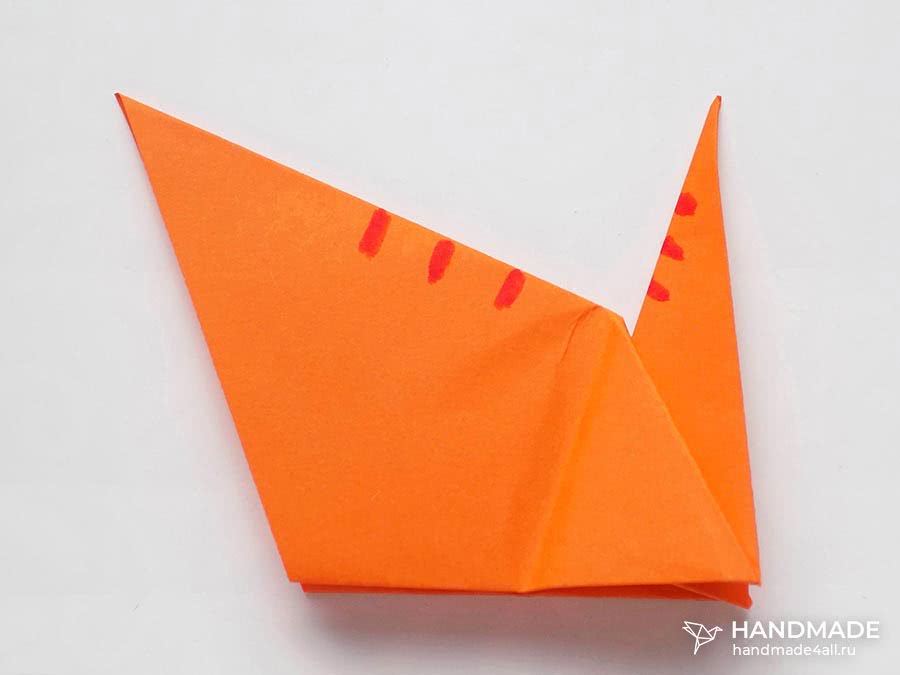 - Средний из торчащих уголков согнуть, чтобы сформировалась мордочка.